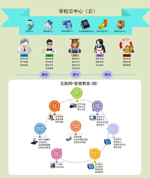 ?互聯(lián)網(wǎng)+智慧教室:構建基于“云+端”一體化的、互聯(lián)網(wǎng)形態(tài)的教學(xué)環(huán)境體系。